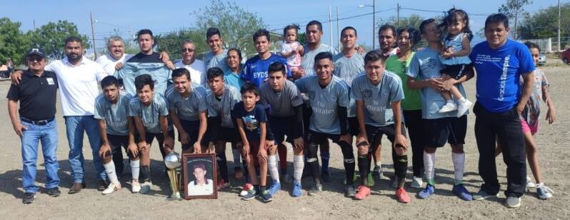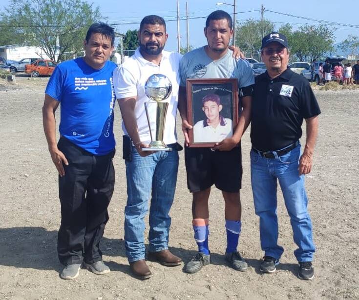 Ciudad Victoria.- En representación del alcalde Eduardo Abraham Gattás Báez, el jefe del Departamento del Deporte y la Juventud de Victoria, Carlos Pizaña, hizo entrega del trofeo al campeón de Copa del torneo que se desarrolla en la Colonia Huertas San Javier.