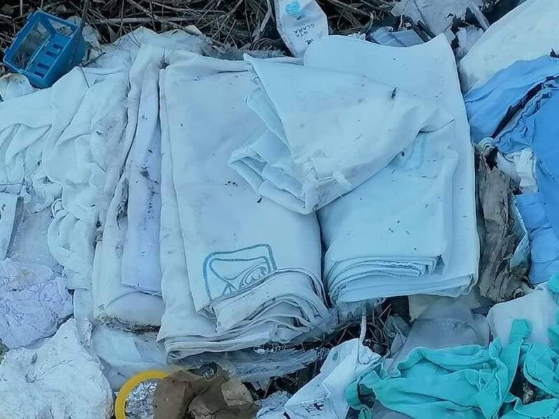 Entre los desechos se encuentran batas, sabanas, cobijas y materiales de curación, los ciudadanos que pasan por la carretera hacen un llamado a las autoridades para que hagan algo al respecto